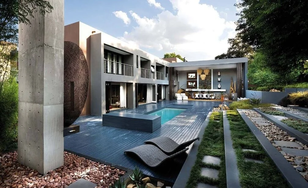 Videreutvikling for Ing. Arve Eid konsept til Sørafrikansk arkitekt Paulo Esteves som har prosjektert en villa i Atholl, Johannesburg.
